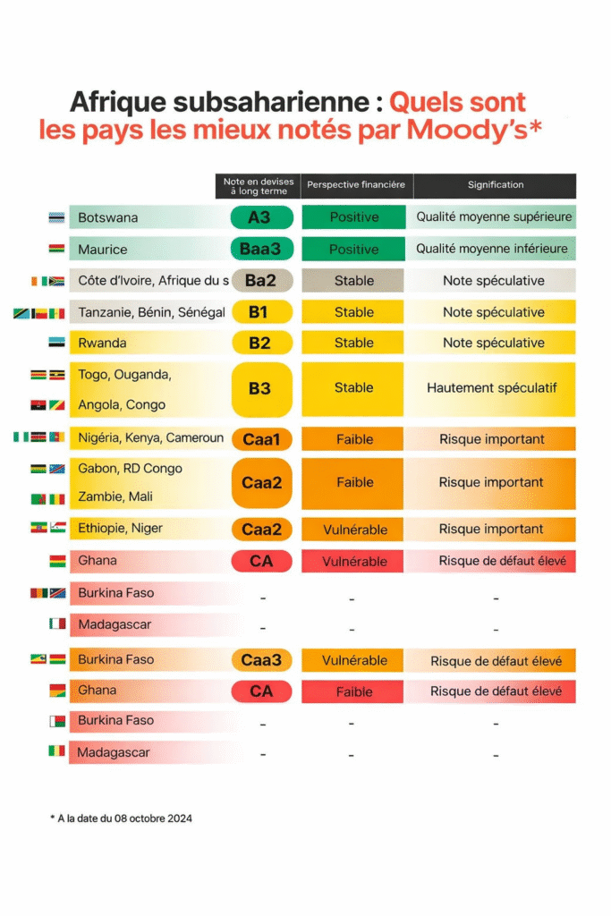 Moody’s ne signe toutefois pas un chèque en blanc. L’agence continue de pointer plusieurs fragilités : la dégradation sécuritaire dans le Sahel, les chocs climatiques, la volatilité des prix des matières premières et les défis sociaux internes, notamment en matière d’emploi des jeunes et d’indicateurs sociaux encore en retrait par rapport à d’autres pays de notation comparable.